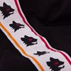 Schwarze AS Roma Trainingsjacke von COPA Football aus der offiziellen AS Roma Kollektion. Diese AS Roma Jacke zeichnet sich durch das weiße Klebeband über Schultern und Ärmeln aus. Das Band zeichnet sich durch das Bild des römischen Wolfes (Lupetto) und die roten und orangefarbenen Streifen aus. Lupetto-Abzeichen auf der linken Brust. Zusätzlich hat diese COPA-Jacke zwei Seitentaschen.