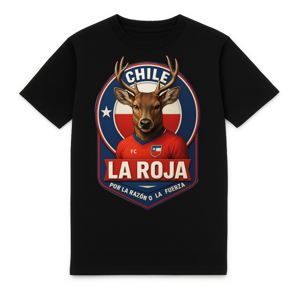 Stilvolles Chile Heavy T-Shirt von FC ELEVEN für Erwachsene. Dieses Heavy T-Shirt besteht aus schwerer Bio-Baumwolle und überzeugt durch eine hochwertige Verarbeitung. Auf der Rückseite befindet sich ein markantes Schildmotiv mit einem Huemul in 3D, der ein Retro-Fußballtrikot der chilenischen Nationalmannschaft trägt. Im Schild sind der Ländernamen, das Motto und der Spitzname der Nationalelf La Roja integriert. Das Design ist in den Nationalfarben Rot, Weiß und Blau gehalten und wird durch ein typisch chilenisches Relief ergänzt.