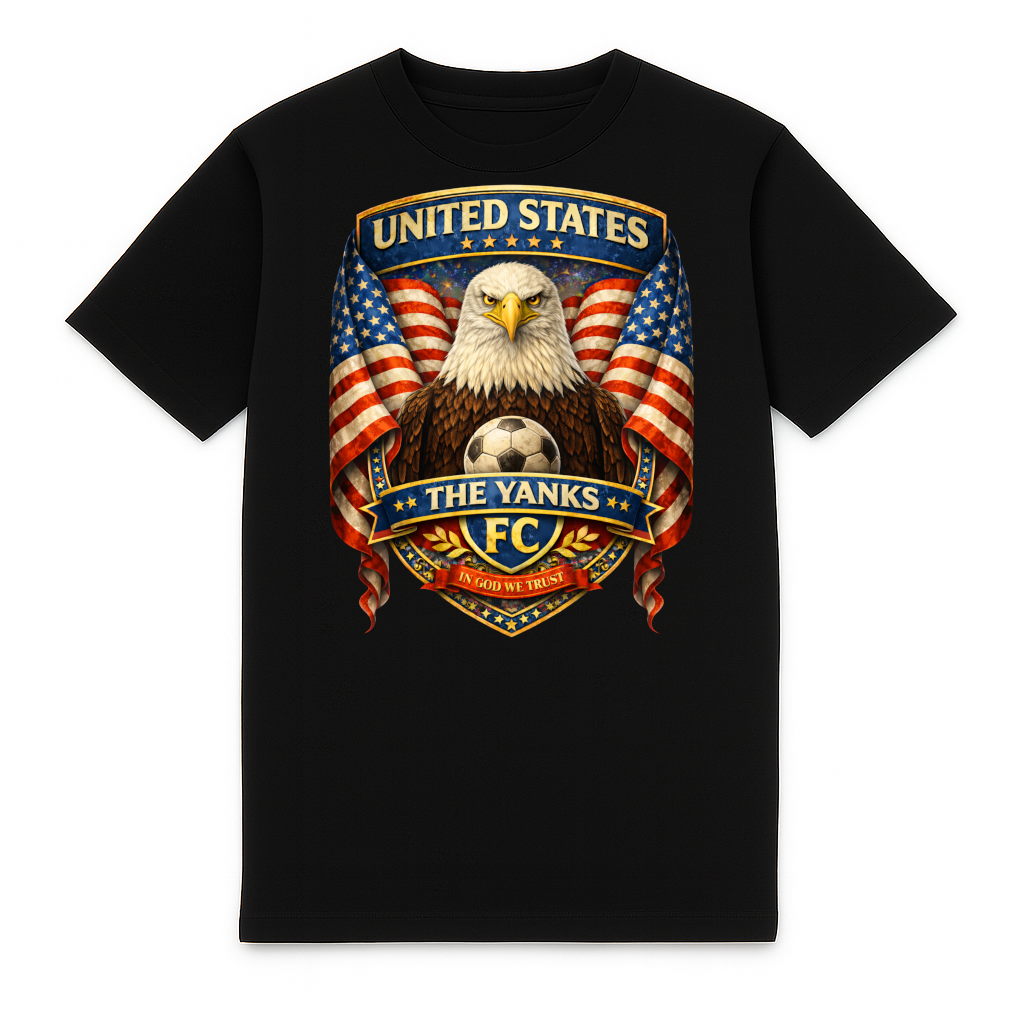 Cooles USA-Fußball-T-Shirt von FC ELEVEN für Erwachsene. Das Heavy-T-Shirt besteht aus schwerem Bio-Baumwollstoff. Charakteristisch für dieses T-Shirt ist der farbenfrohe Grafikprint der Vereinigten Staaten auf dem Rücken. Der Print zeigt die Texte The Yanks und United States, mit einem amerikanischen Weißkopfseeadler in der Mitte. Auf der linken Brust befinden sich die Initialen FC in Schwarz als Silikonlogo. Das Heavy-T-Shirt ist komplett schwarz und mit einem Rundhalsausschnitt versehen. Das T-Shirt besteht aus schwerer Baumwolle und hat eine normale Passform. Material: 100% Bio-Baumwolle.