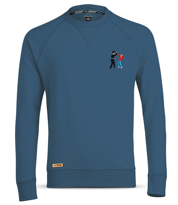 So wie Sonne und Mond gibt es auch Fußballfans und Polizisten. Manche Dinge sind einfach untrennbar. Perfekt dargestellt auf diesem Bobby Hooligan Pullover. Dieser stylische Pullover besteht aus 100 % Baumwolle. Eine weiche, anschmiegsame Sweat-Qualität, die lange hält. Es ist in der Farbe Blau erhältlich. Auf der Brust finden Sie ein gesticktes Bild eines Hooligans mit einem Bobby im Nacken. Außerdem hat der Pullover wunderschön verarbeitete FC Kluif Logos und Labels an der Innenseite des Nackens und auf der Unterseite des Pullovers.