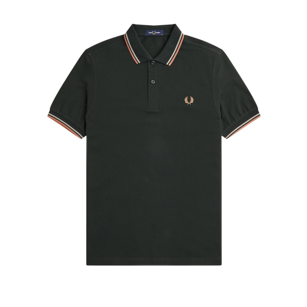 Fred Perry Poloshirt für Herren in der Farbe „Nachtgrün“. Das dunkelgrüne Poloshirt von Fred Perry ist das bekannte Twin Tipped-Modell. Die beiden Streifen an Paspelierung und Kragen sind in den Farben „Warm Grey“ und „Light Rust“ gehalten. Diese Farbkombination sorgt für einen klassischen Look. Fred Perrys berühmtes Lorbeerkranz-Logo auf der linken Brust. Das Fred Perry Poloshirt aus der Twin Tipped-Kollektion hat eine wunderbare Passform, die auch nach vielen Wäschen nicht verschwindet. Die modischen Polos von Fred Perry haben das Retro-Tennis-Design, das jeder Sportmode-Fan liebt. Selbstverständlich handelt es sich bei der verwendeten Baumwolle um eine sehr gute Baumwoll-Pique-Qualität. Das Poloshirt von Fred Perry passt an den warmen Tagen des Jahres perfekt über Ihre Jeans, Chino-Hosen oder Shorts. Die Fred Perry Polos sind in verschiedenen beliebten Farben erhältlich. Die Fred Perry Twin Tipped Poloshirt-Kollektion sitzt bequem und normal am Körper. Material: 100 % Baumwoll-Piqué.