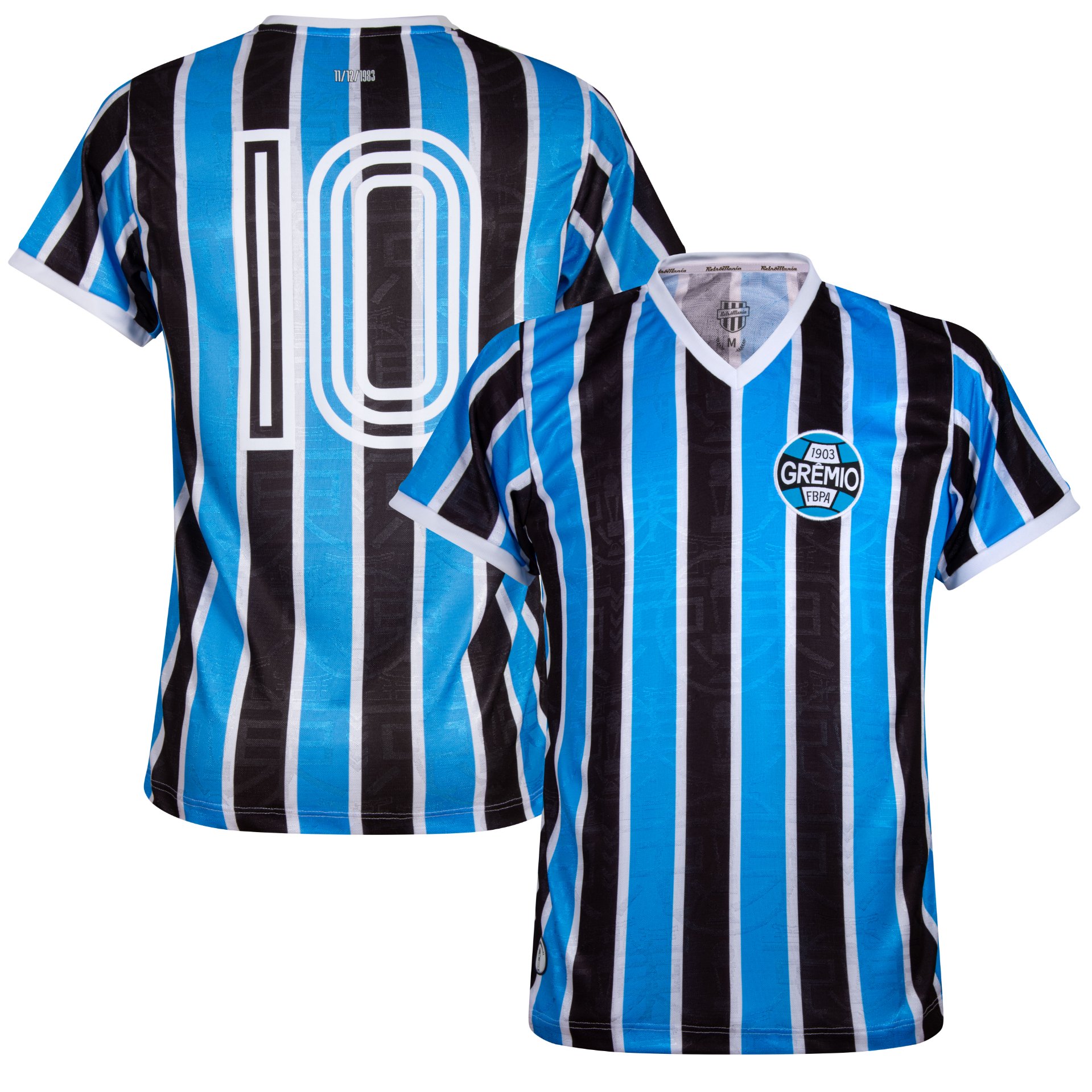 Dies ist das Gremio Retro-Fußballtrikot 1983 von RetroMania. Auf der Rückseite des Gremio-Fußballtrikots befindet sich die Nummer 10. Dieses Retro-Fußballtrikot basiert auf dem Gremio-Heimtrikot von 1983. Das Gremio Retro-Fußballtrikot verfügt über die charakteristischen schwarz-weiß-hellblauen Streifen. Es hat außerdem einen weißen V-Ausschnitt und weiße Paspeln. Auf der linken Brust befindet sich das Vintage-Logo des brasilianischen Fußballvereins Gremio. Das ideale Retro-Trikot für den wahren Retro-Enthusiasten. Material: 100 % Polyester.
