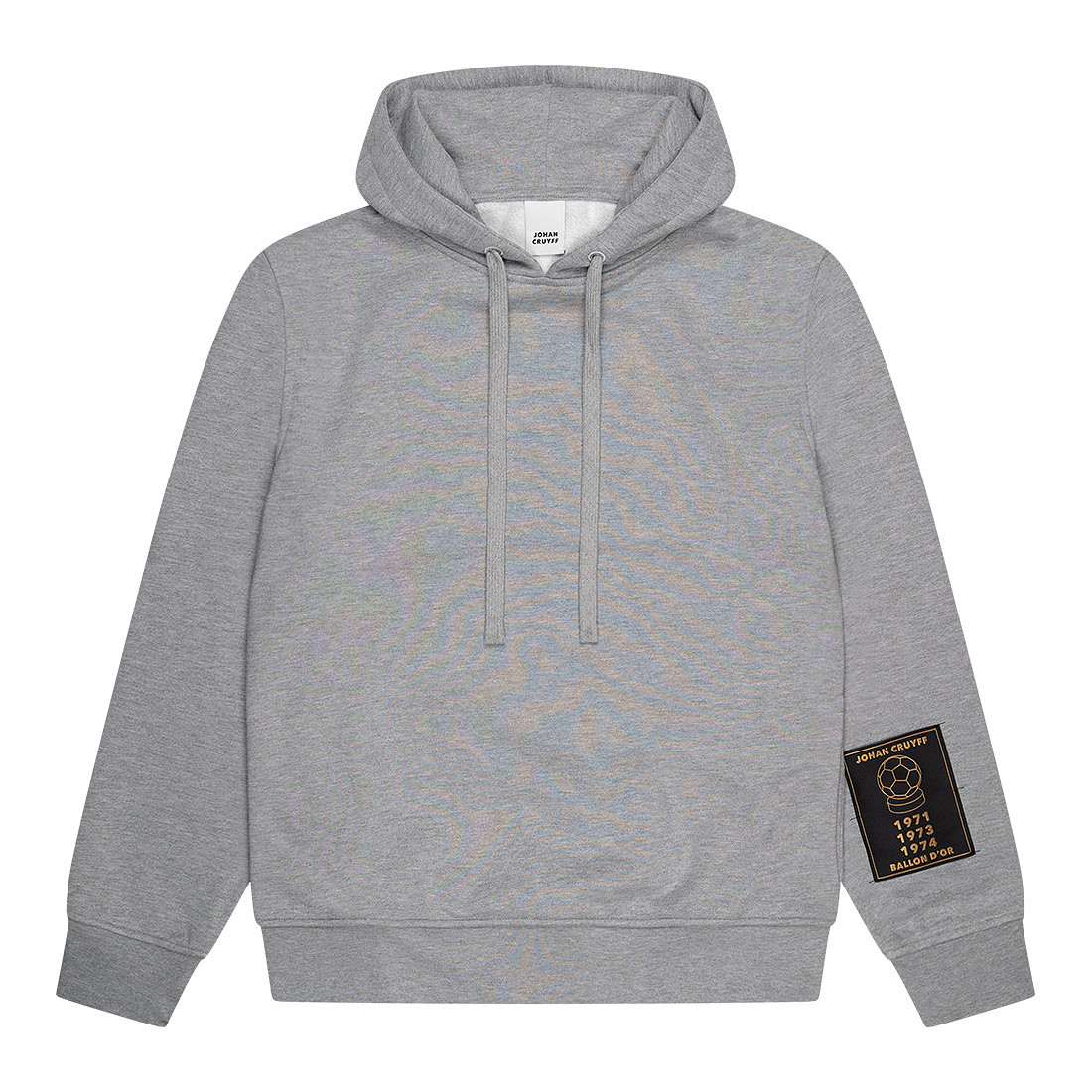 Stilvoller Johan Cruyff Premium Johan Hoodie in Grau für Erwachsene. Dieser hochwertige Hoodie besteht aus 100% schwerem French-Terry-Stoff und bietet eine lockere Passform für maximalen Tragekomfort. Der Ballon-d’Or-Patch am linken Ärmel verweist auf die Jahre 1971, 1973 und 1974, in denen Johan Cruyff diese prestigeträchtige Auszeichnung gewann. Ein dezentes Johan Cruyff Badge auf der Rückseite sorgt für eine exklusive Optik.