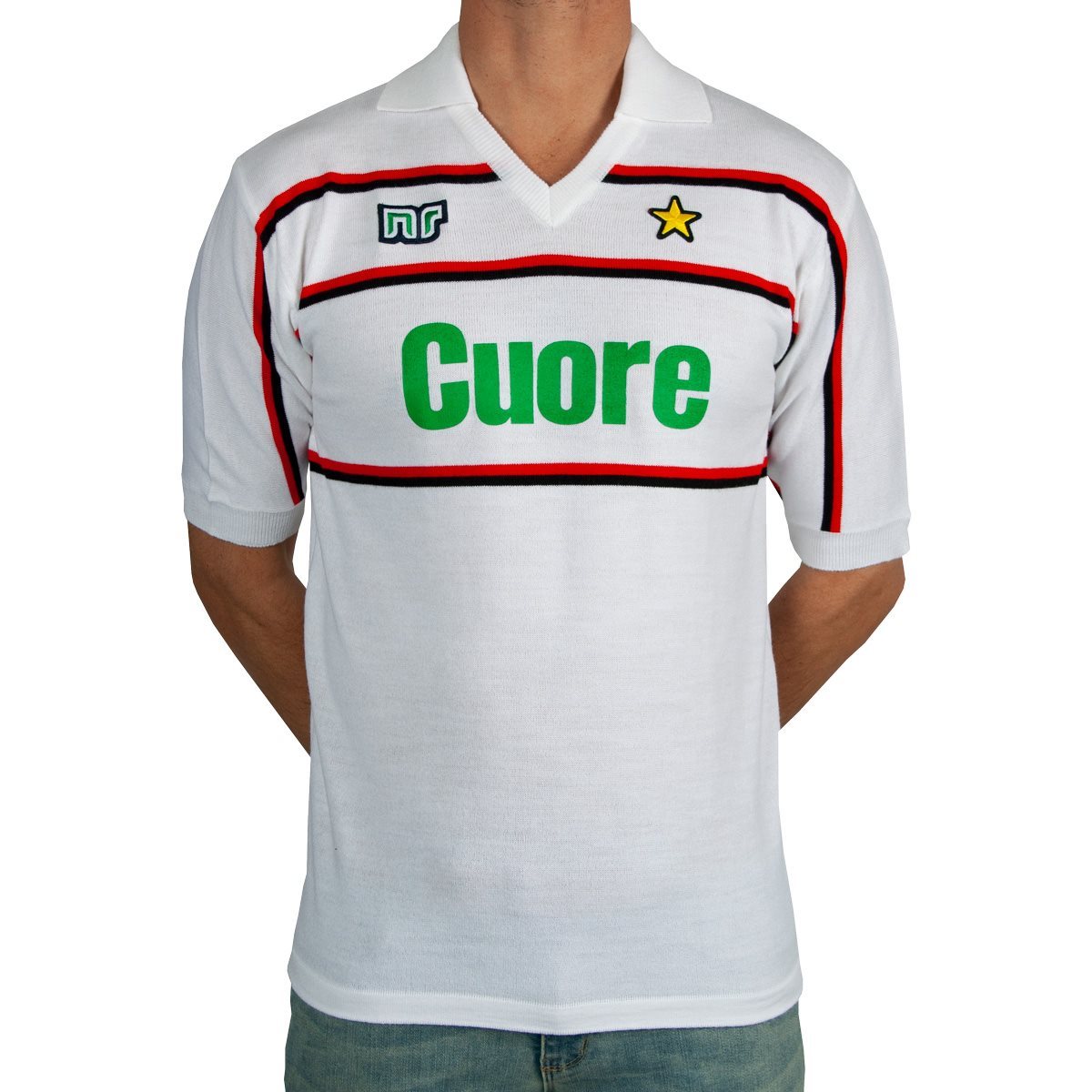 Dieses AC Mailand Auswärtstrikot ist das offizielle und originale authentische NR Nicola Raccuglia Auswärtstrikot des AC Mailand aus der Saison 1983-1984. Dieses AC Mailand Auswärtstrikot wird auf die gleiche Weise und mit den gleichen Materialien von Ennerre in Italien hergestellt wie in den 1980er Jahren. Ennerre war auch in den 80er Jahren Bekleidungssponsor des AC Mailand, unter anderem.