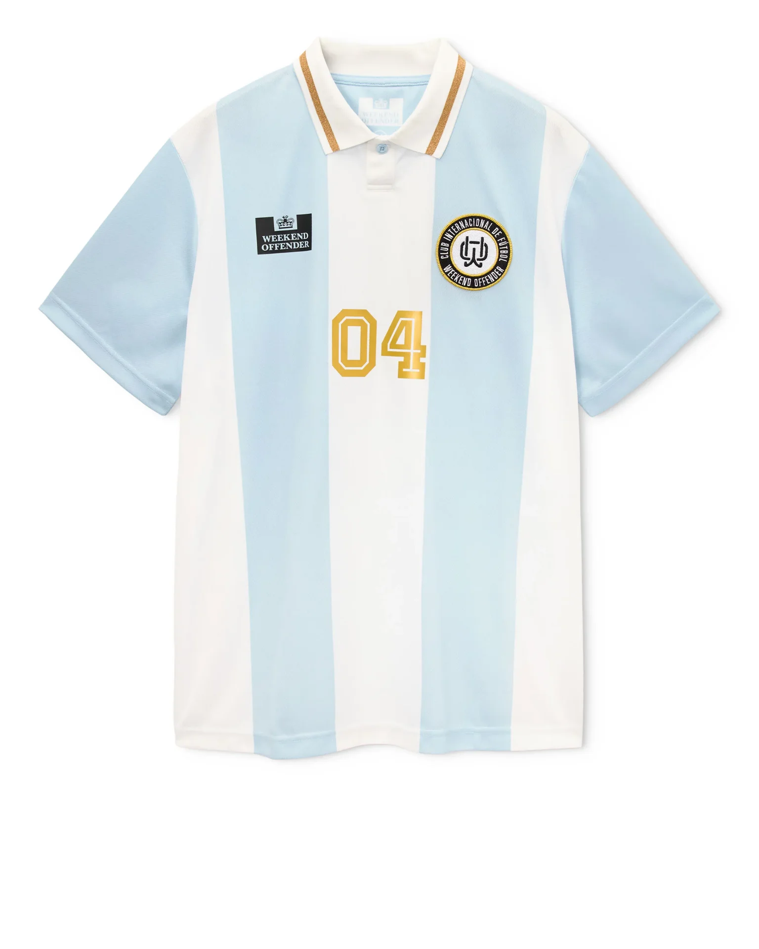 Das Moulay Fußballtrikot von Weekend Offender vereint stilvoll retro Fußballinspiration mit moderner Streetwear. Inspiriert von klassischen südamerikanischen Trikots fällt dieses Modell durch breite vertikale Streifen in Hellblau und Weiß auf, eine subtile Anspielung auf das ikonische Trikot der Argentina national football team.